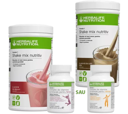 Herbalife Formula 1 – înlocuitor de hrana echilibrat, delicios, foarte hrănitor, cu proteine usor asimilabile disponibil in 10 variante de arome: Piersici si Lychee , Yuzu și Fructul Pasiunii , Cafe Latte, Fursecuri si Frisca, Vanilie, Caramel Sarat, Ciocolata, Ciocolata si menta, Căpșuni, Banane, Fructe de Padure.